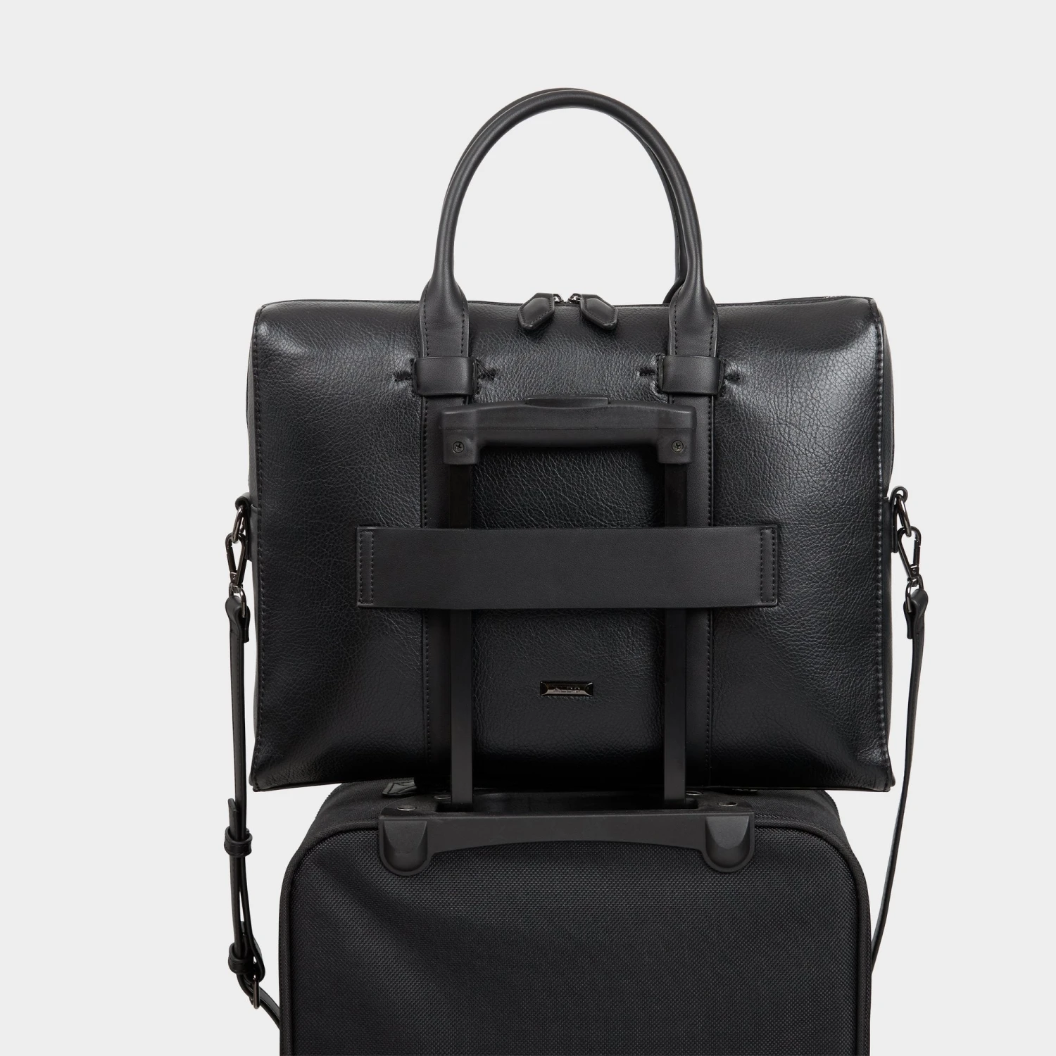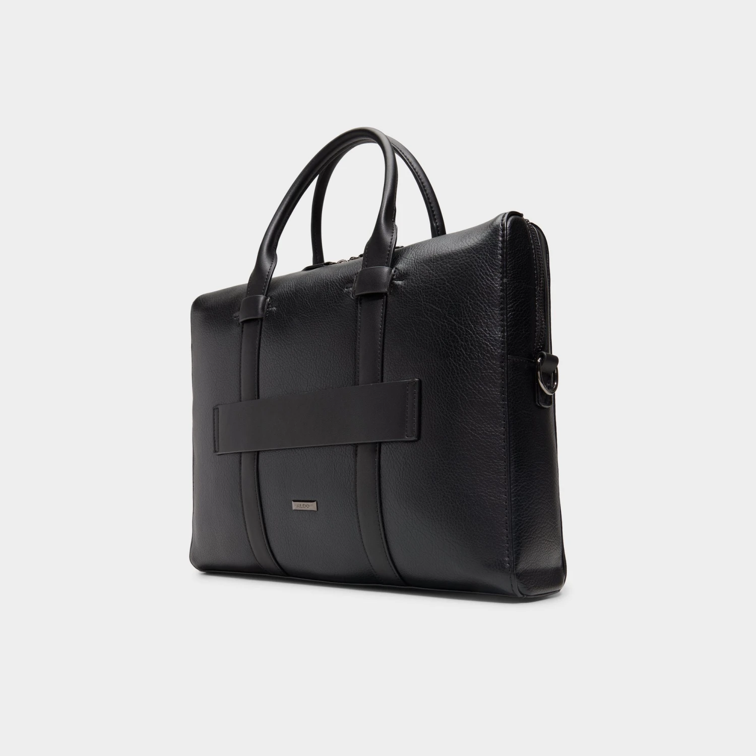 Streamlined. Sophisticated. Built for every move. This sleek black laptop bag keeps workdays and travel effortless. A spacious interior compartment keeps essentials in check, while a zipper closure secures the rest. Designed with a removable, adjustable crossbody strap for hands-free ease and a trolley sleeve that slips right over your luggage, it’s made for smooth travel. Finished with a built-in key fob and top handles, it’s the carry-all that does it all.