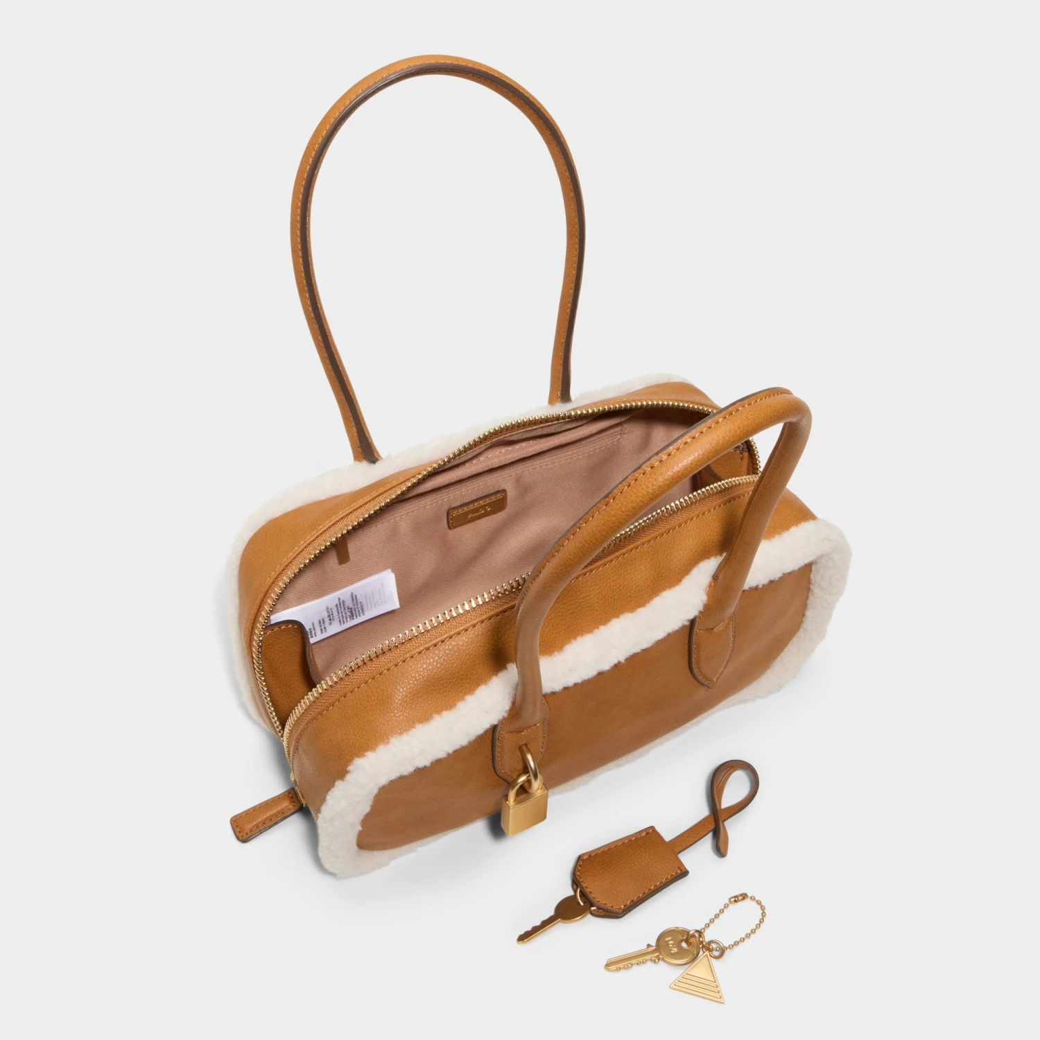 Elevate your seasonal wardrobe with the Aldo Daystromm, a masterclass in urban sophistication. This sleek rectangular shoulder bag blends the warmth of plush shearling edges with the timeless appeal of rich caramel leather. Accented by a signature swingy padlock charm, it is designed to transition effortlessly from brisk morning coffee runs to elegant evening strolls, ensuring your style remains polished even in the coldest weather.