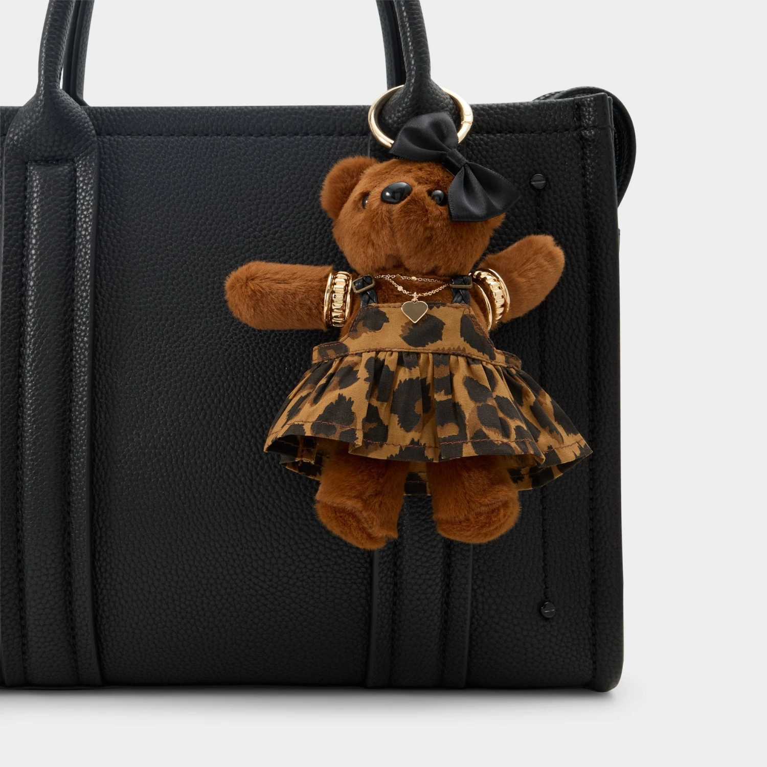Bring a sense of fun and high-fashion flair to your favorite handbag with the Aldo Goldielux. This charming teddy bear accessory is dressed to impress in a playful cheetah print dress, offering an instant style upgrade that turns any bag into a statement piece. Whether you’re dressing up for a day out or looking for a delightful gift, this charm adds the perfect touch of whimsy and personality to your ensemble.