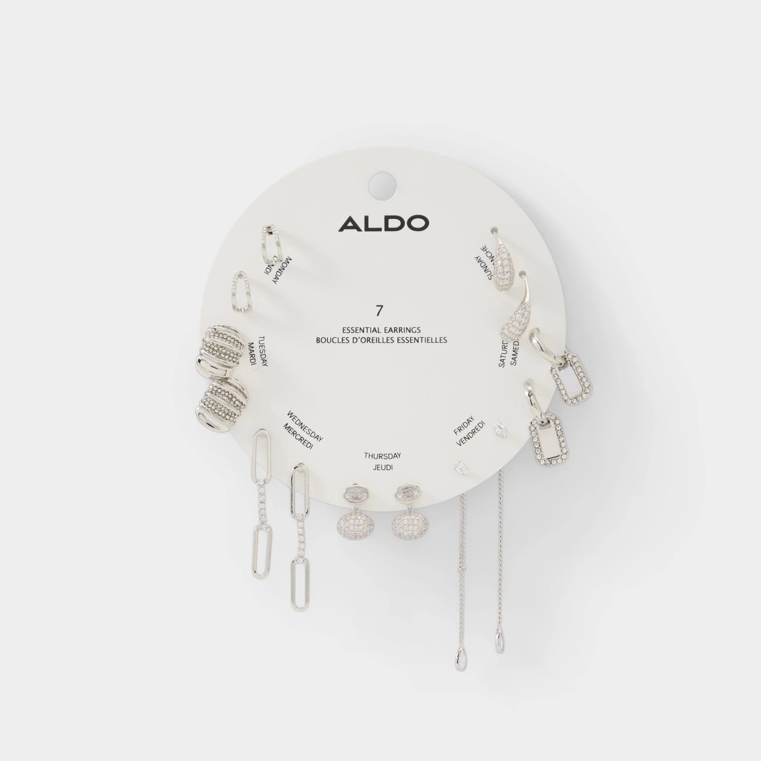 Elevate your jewelry collection with the Aldo Partyessentials set, a masterfully curated selection of seven shimmering silhouettes designed to take you from the boardroom to the dance floor. This collection offers pre-planned sparkle on one sleek card, featuring everything from delicate pave huggies to dramatic, shoulder-skimming chain drops.