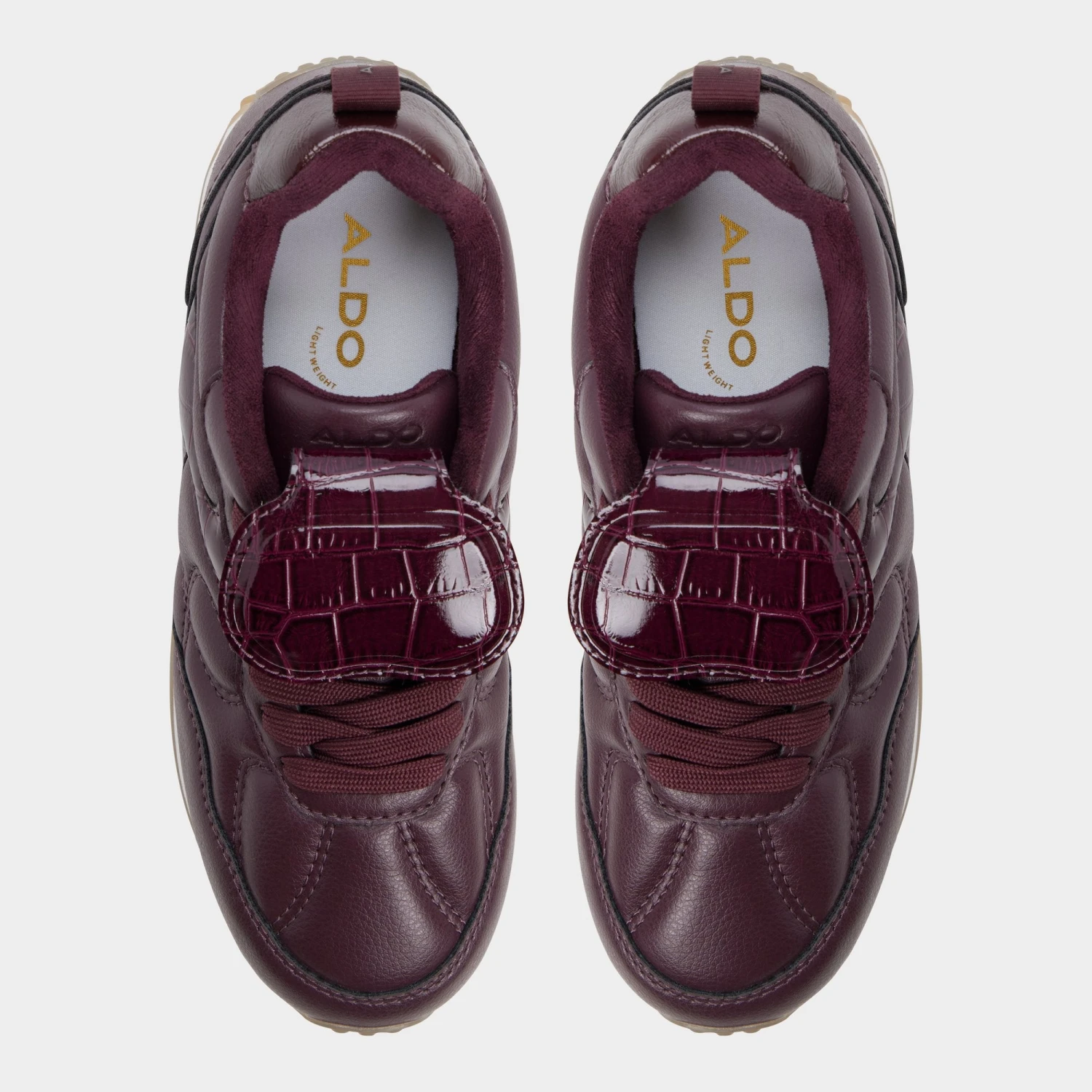 Elevate your footwear collection with the Aldo Siyara, a sophisticated blend of high-fashion textures and urban utility. These sneakers showcase Aldo’s commitment to trend-forward design, featuring deep merlot leather and striking croc-patent accents that transition effortlessly from morning errands to evening gallery hops.