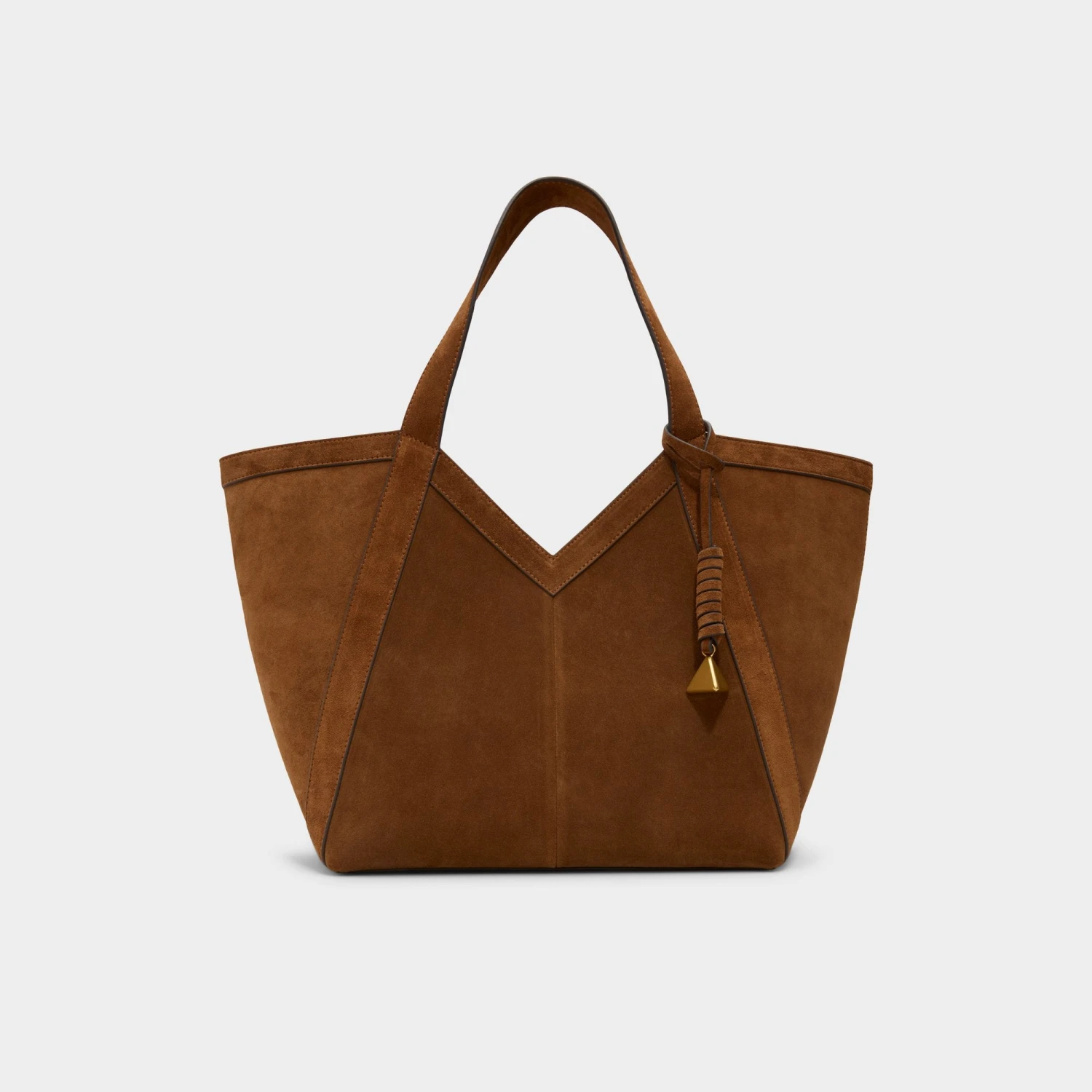 The Aldo Soulaa tote brings a touch of refined luxury to your daily rotation. Crafted with velvety suede and featuring sharp V-cut seams, this roomy accessory is designed to transition seamlessly from professional office settings to relaxed weekend outings, accented by a striking sculptural gold-tone pyramid tassel that sways with quiet confidence.