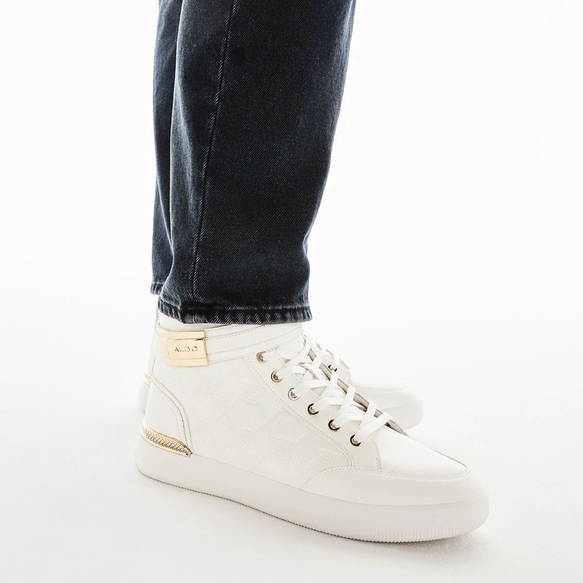 Contrasting trims, embossed detailing and luxe little finishes turn these high top sneakers into striking statement-makers.